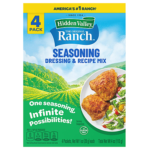 Spice up quick meals with Hidden Valley Original Ranch Seasoning Dressing and Recipe Mix. Made with a pre-portioned blend of zesty herbs and spices, this versatile ranch seasoning packet has endless culinary possibilities. The convenient packet is ready to rip open and start cooking—it's perfect for making fresh, creamy ranch dressing or creating quick meals or snacks the family will love. Use this gluten free seasoning mix to whip up a dipping sauce for veggie platters, pizza, party wings and fries. Or, mix this ranch seasoning mix with other spices to use as a dry rub seasoning for pork chops. To make Hidden Valley Ranch Dressing, combine 1 cup whole milk and 1 cup mayonnaise with package contents. Mix well. Cover and refrigerate. Chill for 30 minutes to thicken, stirring before serving. America’s No. 1-selling ranch dressing, Hidden Valley is Ranch Done Right (1).
