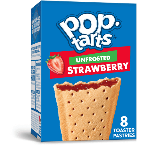Pop-Tarts toaster pastries are the perfect sweet treat at breakfast, for lunch snack time, or dessert. Featuring a sweet strawberry-flavored filling in a soft pastry crust, this ready to eat treat is perfect for snack time for kids and adults on the go. Pack Pop-Tarts Unfrosted Strawberry in lunchboxes or backpacks when it's time for school snacking, or stock the office pantry with this individually wrapped grab and go adult snack time choice. Pop them in the toaster and pair with milk, create your own ice cream sandwiches, or incorporate into your favorite dessert recipe for a sweet treat. These irresistible snack time options for kids and adults provide a good source of three B vitamins. Stock your pantry with these shelf stable snack alternatives and enjoy ready to eat treats anytime. A flavor for everyone, including beloved classics like Frosted Strawberry or Frosted Cherry, or our more indulgent flavors, Frosted Cookies and Creme or Frosted Chocolate Fudge.