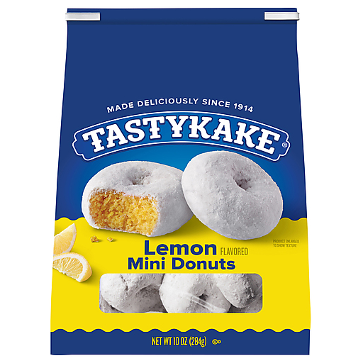 Tastykake® Lemon Flavored Mini Donuts are deliciously tart, sweet and so fun to eat. Featuring a lemon flavored cake donut with melt in your mouth powdered sugar topping, these donuts are made to be enjoyed morning, noon and night. Pair one or two Tastykake Lemon Mini Donuts with your morning coffee for the perfect breakfast, or enjoy a few in the afternoon for a sweet snack. The convenient resealable bag locks freshness in so your donuts stay fluffy and moist for longer.
