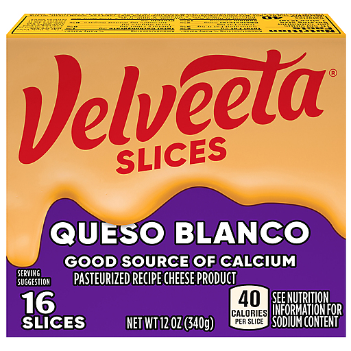 Velveeta Pasteurized Recipe Queso Blanco Cheese Slices 16 ea